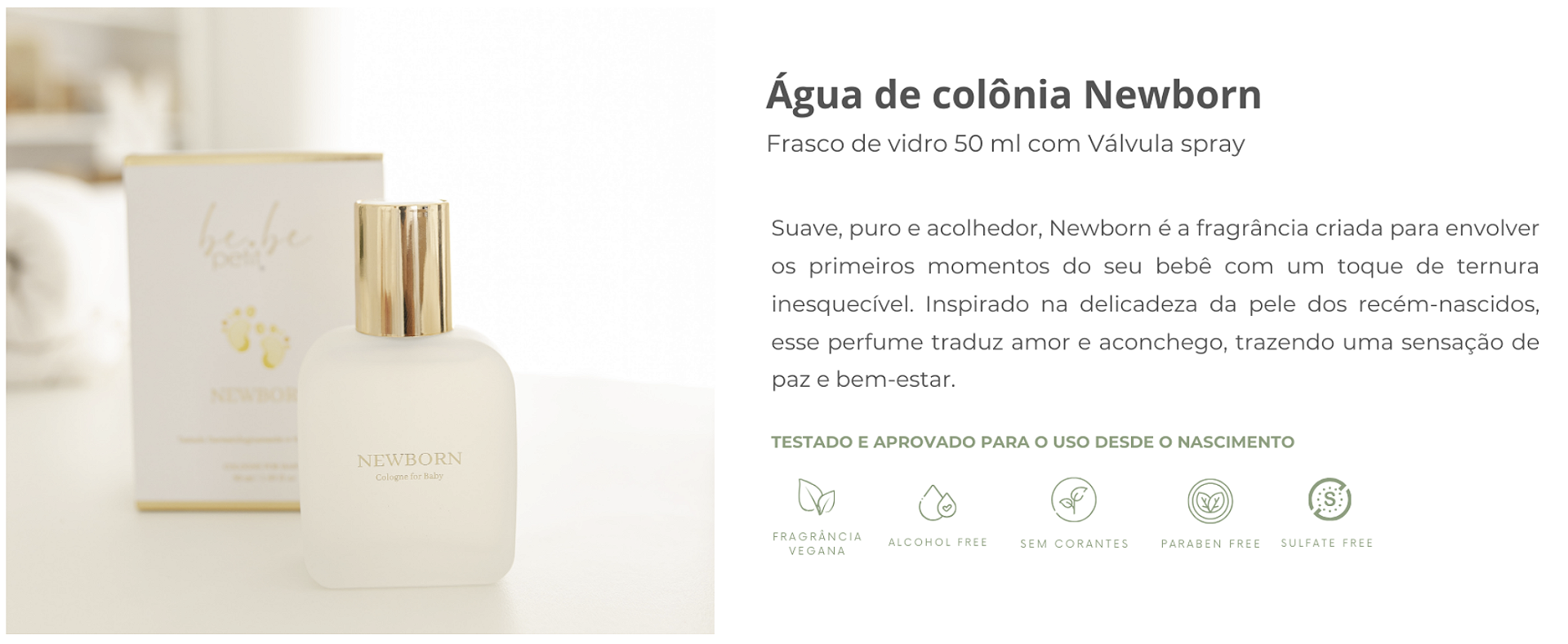 - Seu frasco de vidro de 50 ml com válvula spray proporciona aplicação prática e precisa, ideal para acompanhar a rotina do bebê com carinho e cuidado.