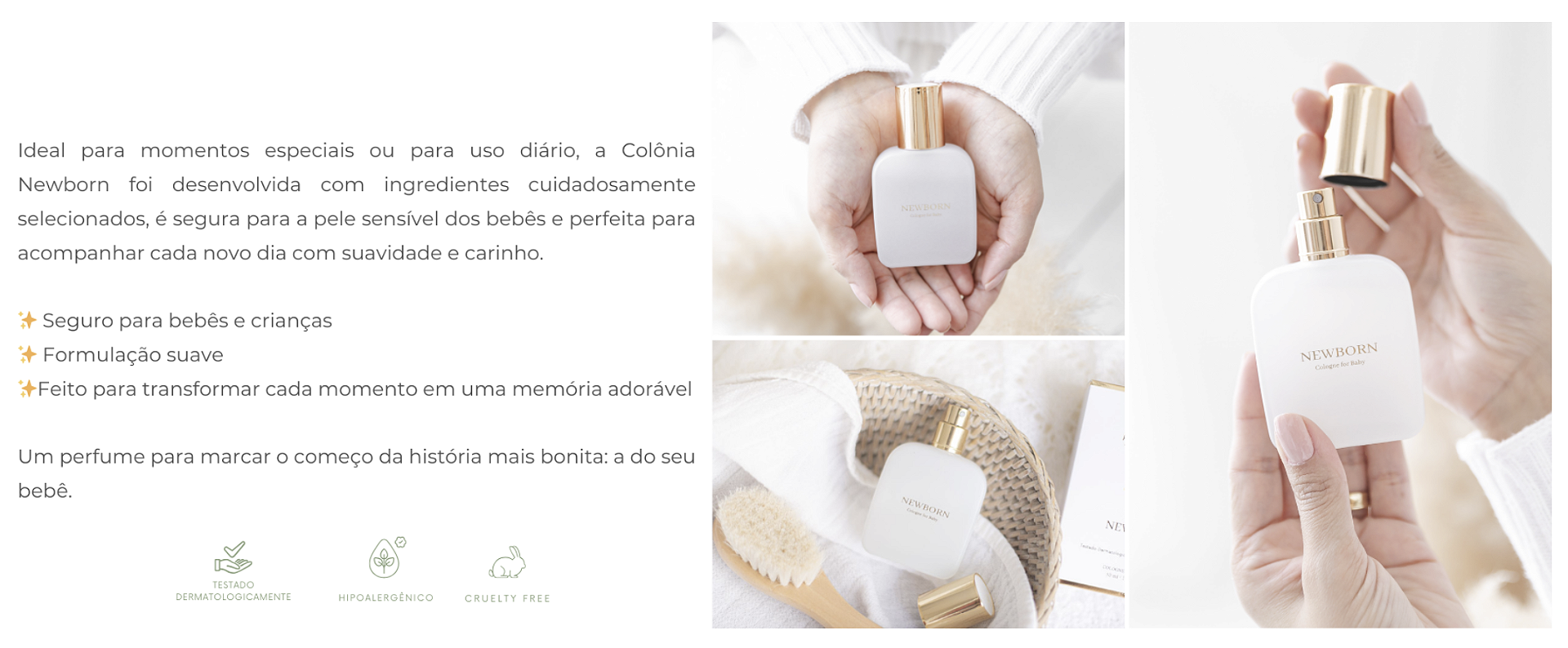 Ideal tanto para momentos especiais quanto para o uso diário, sua formulação leve e segura foi cuidadosamente desenvolvida com ingredientes selecionados, sendo perfeita para a pele sensível de bebês e crianças.